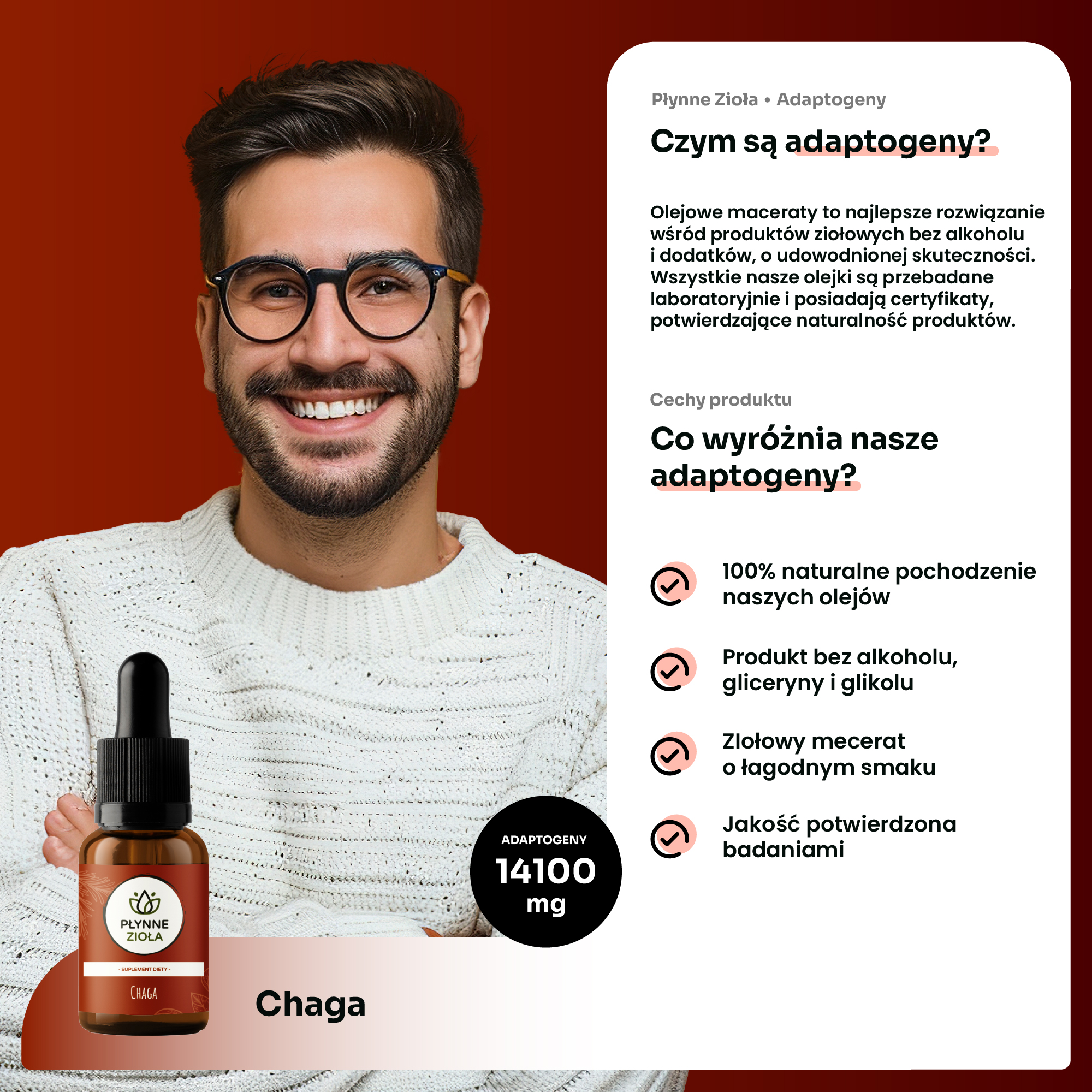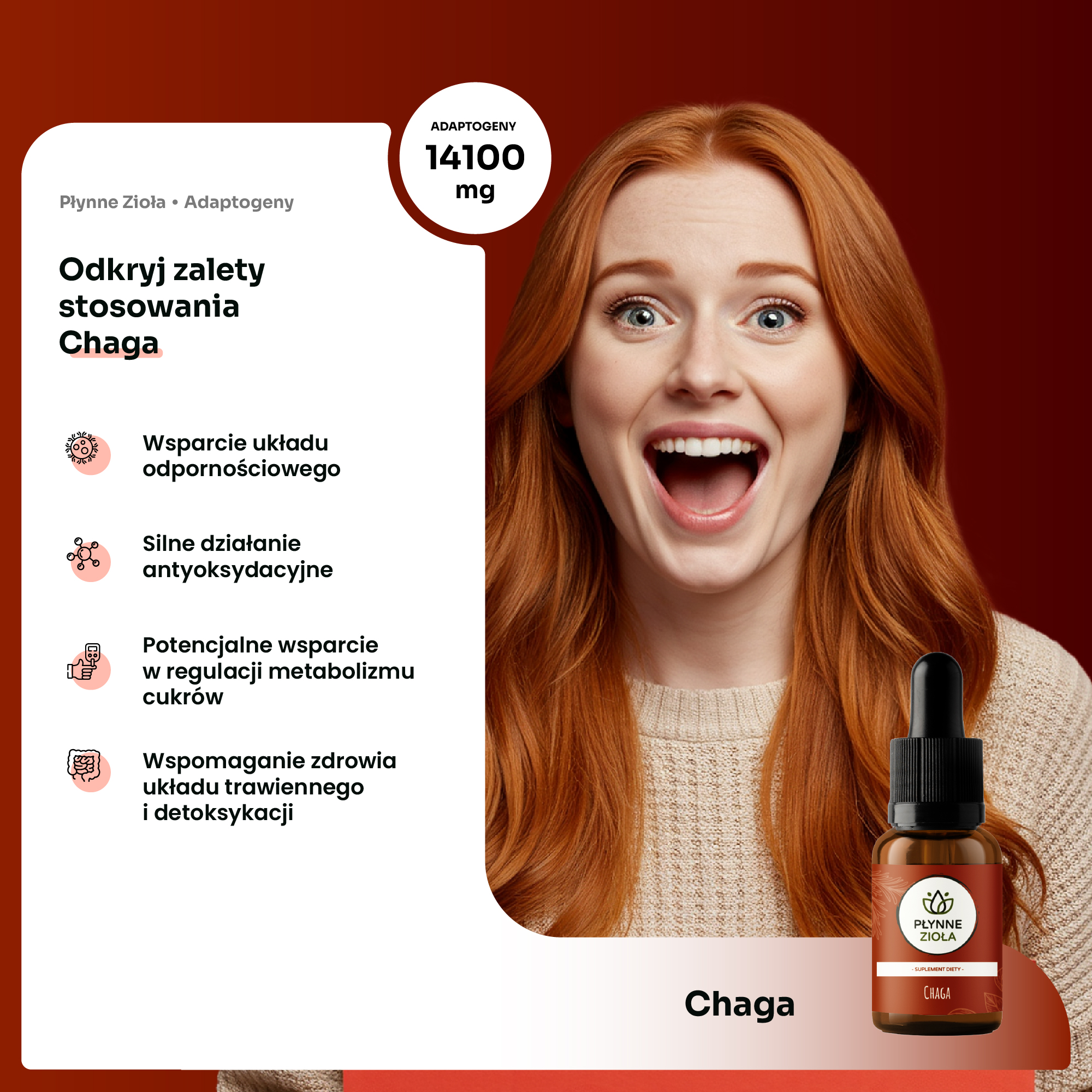 Współczesny, pełen stresu styl życia, zanieczyszczenia i niezdrowa dieta mogą osłabiać naturalne mechanizmy obronne organizmu. Chaga jest ceniona za swoje potencjalne właściwości wspierające układ odpornościowy, antyoksydacyjne i adaptogenne, dzięki czemu może stanowić naturalne wsparcie dla organizmu w okresach zwiększonego obciążenia.