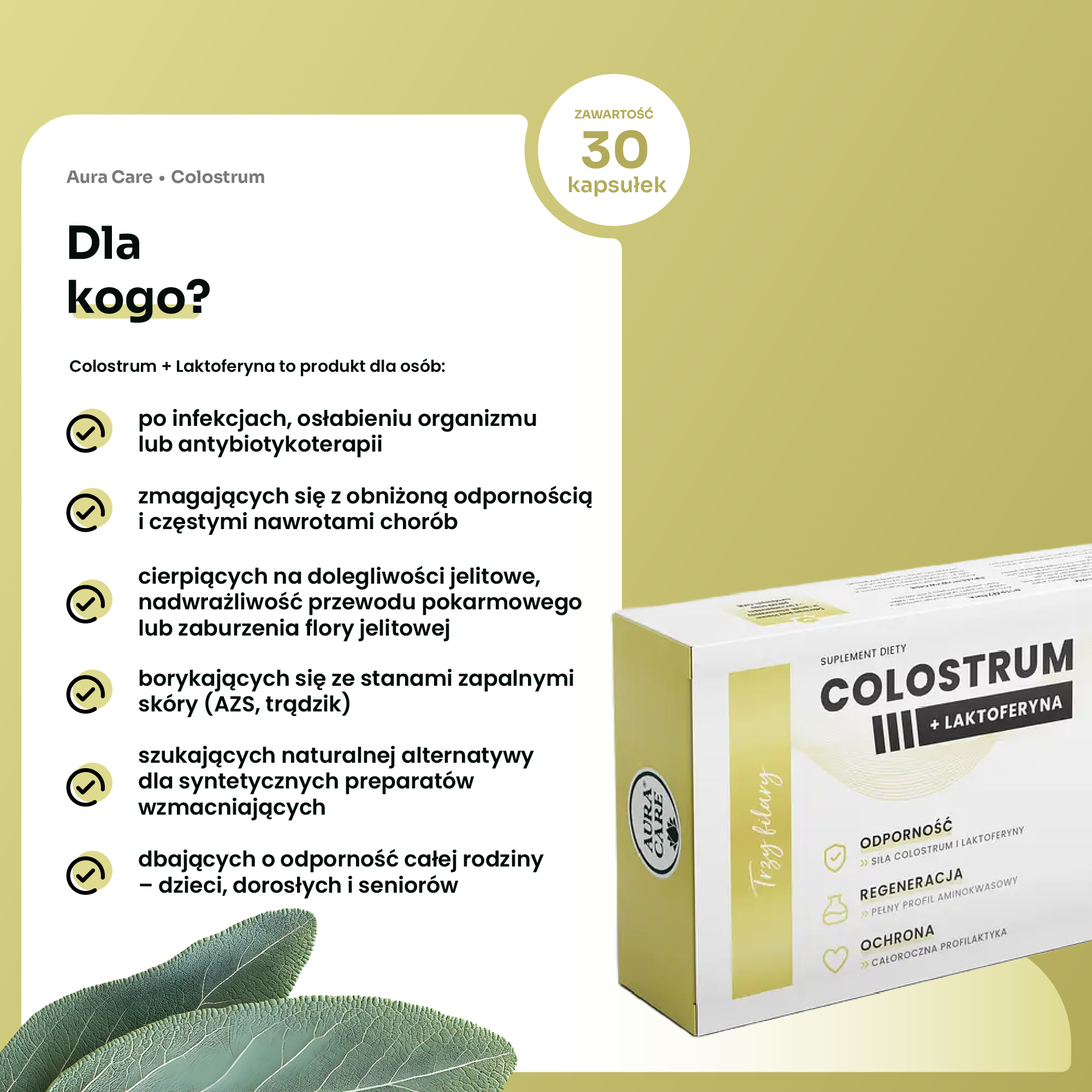 Aura Care – Colostrum + Laktoferyna Odporność. Regeneracja. Ochrona.