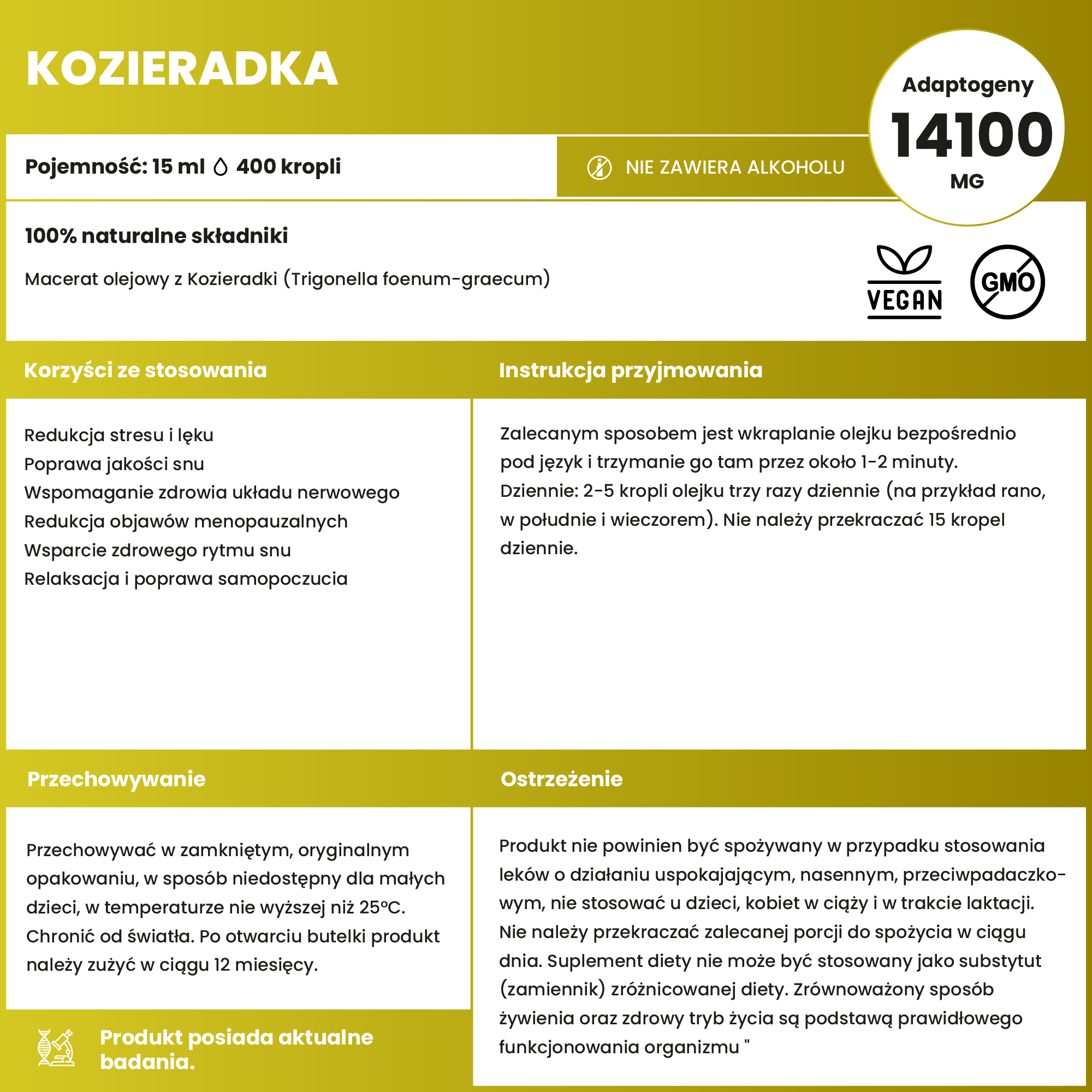 KOZIERADKA Kozieradka | 14100 mg PREMIUM, BADANIA, CERTYFIKATY