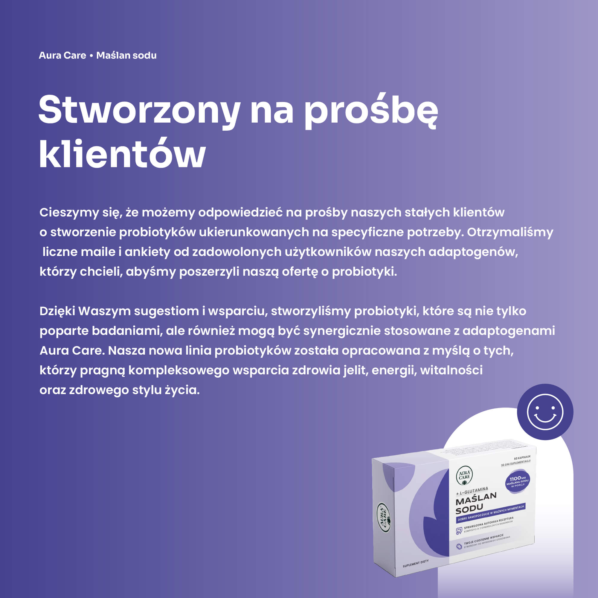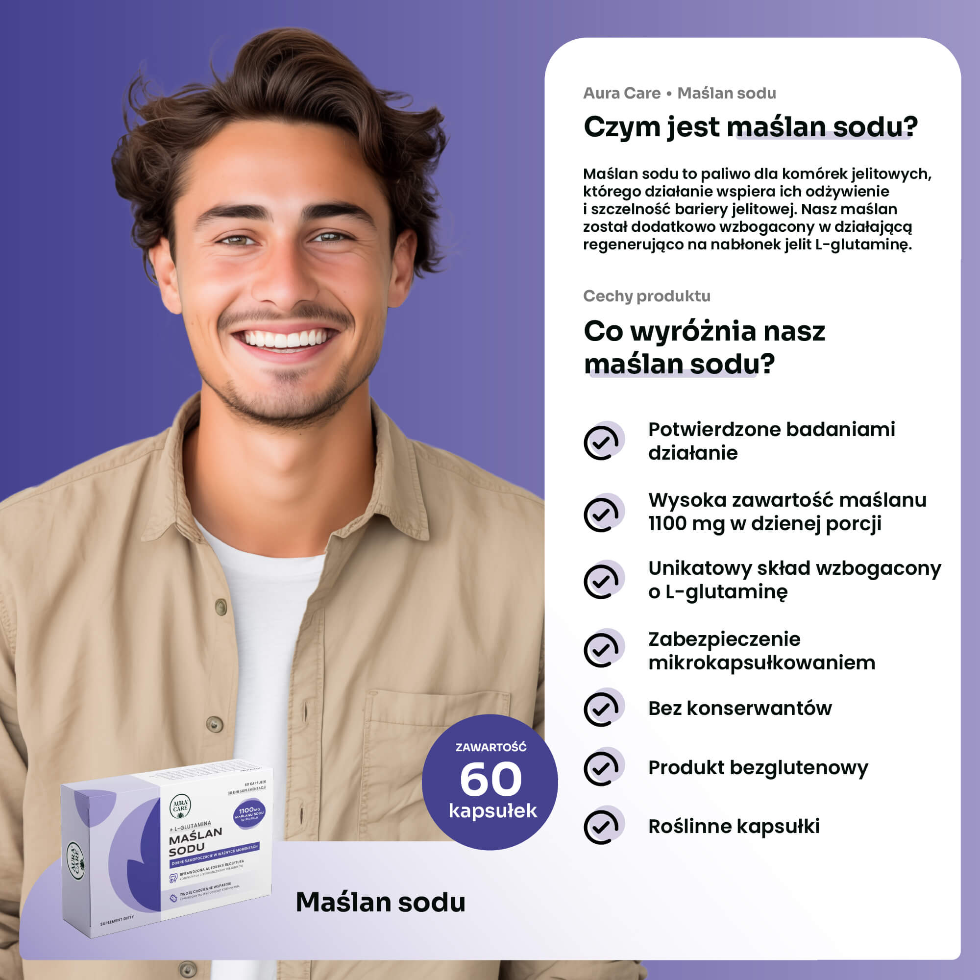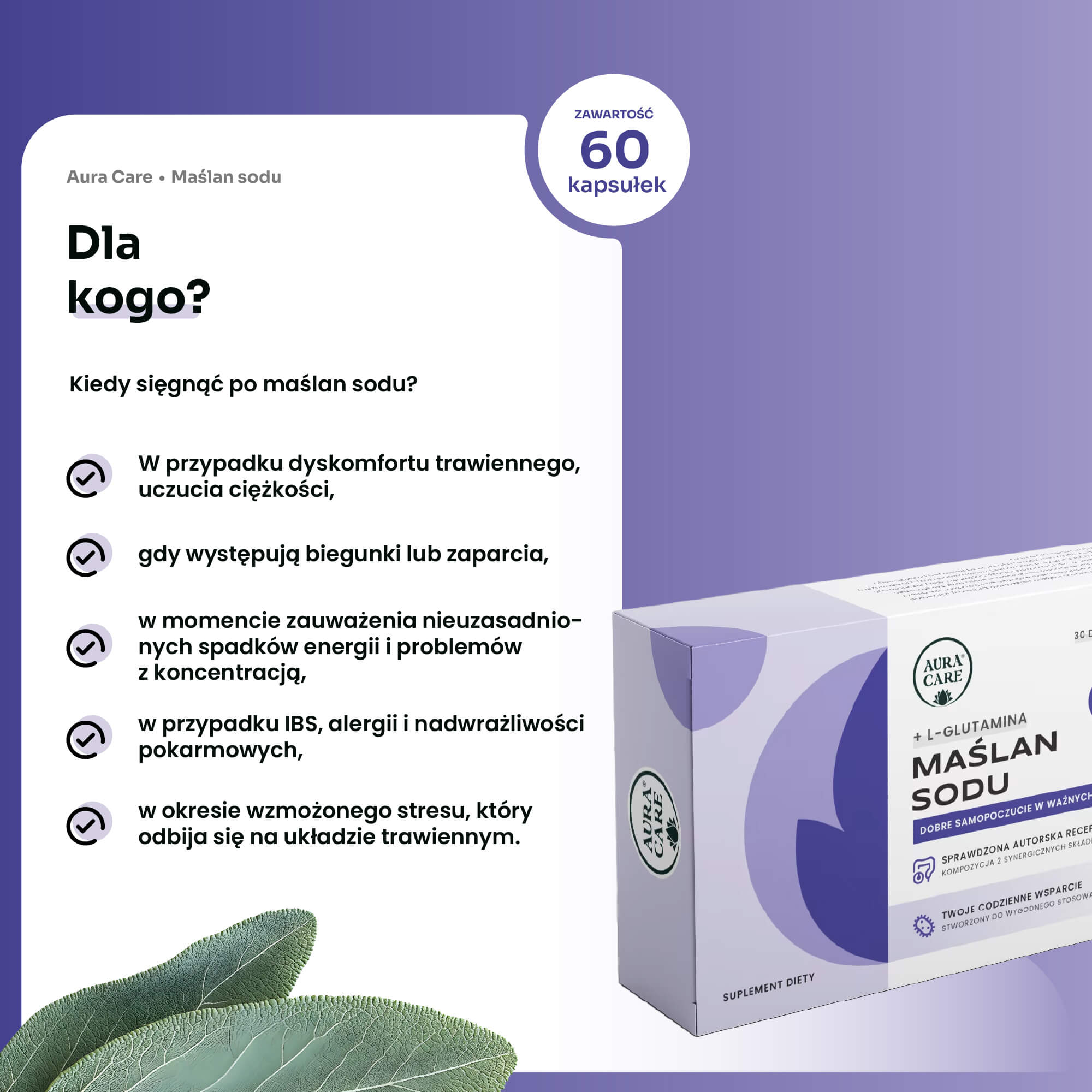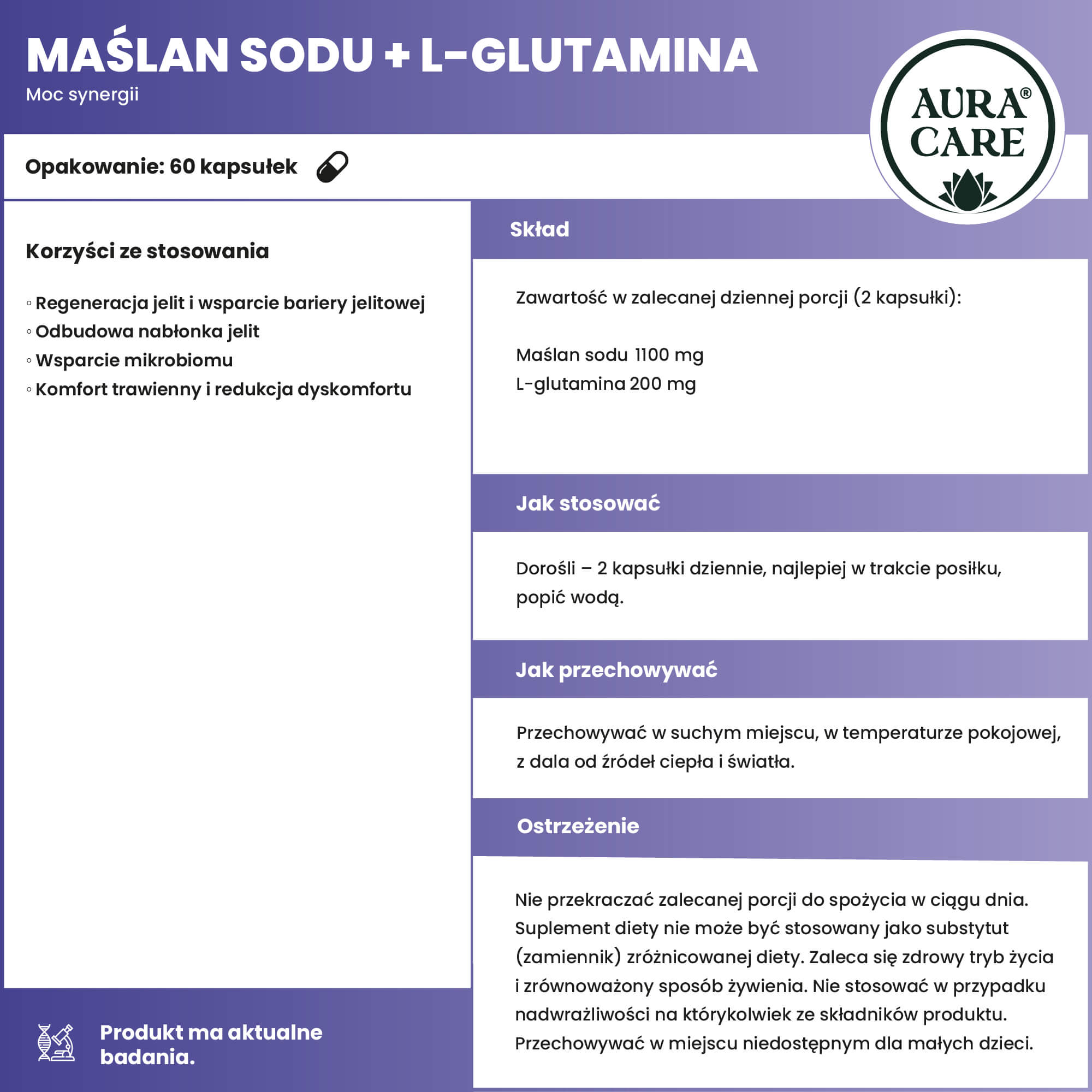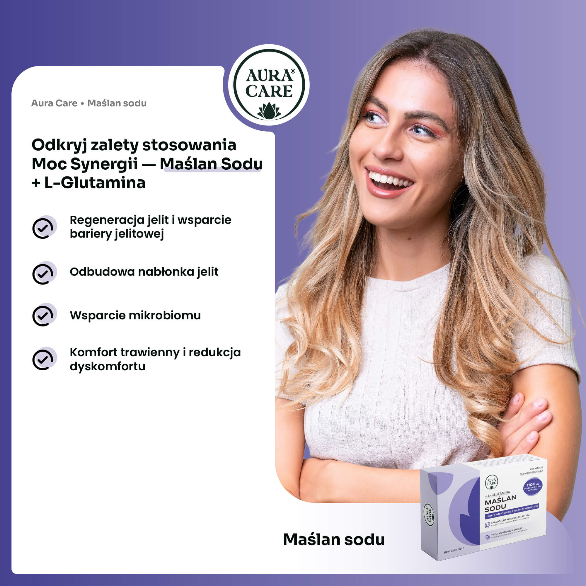 Maślan Sodu + L-GlutaminaMoc synergii Maślan sodu Aura Care | 60 kapsułek