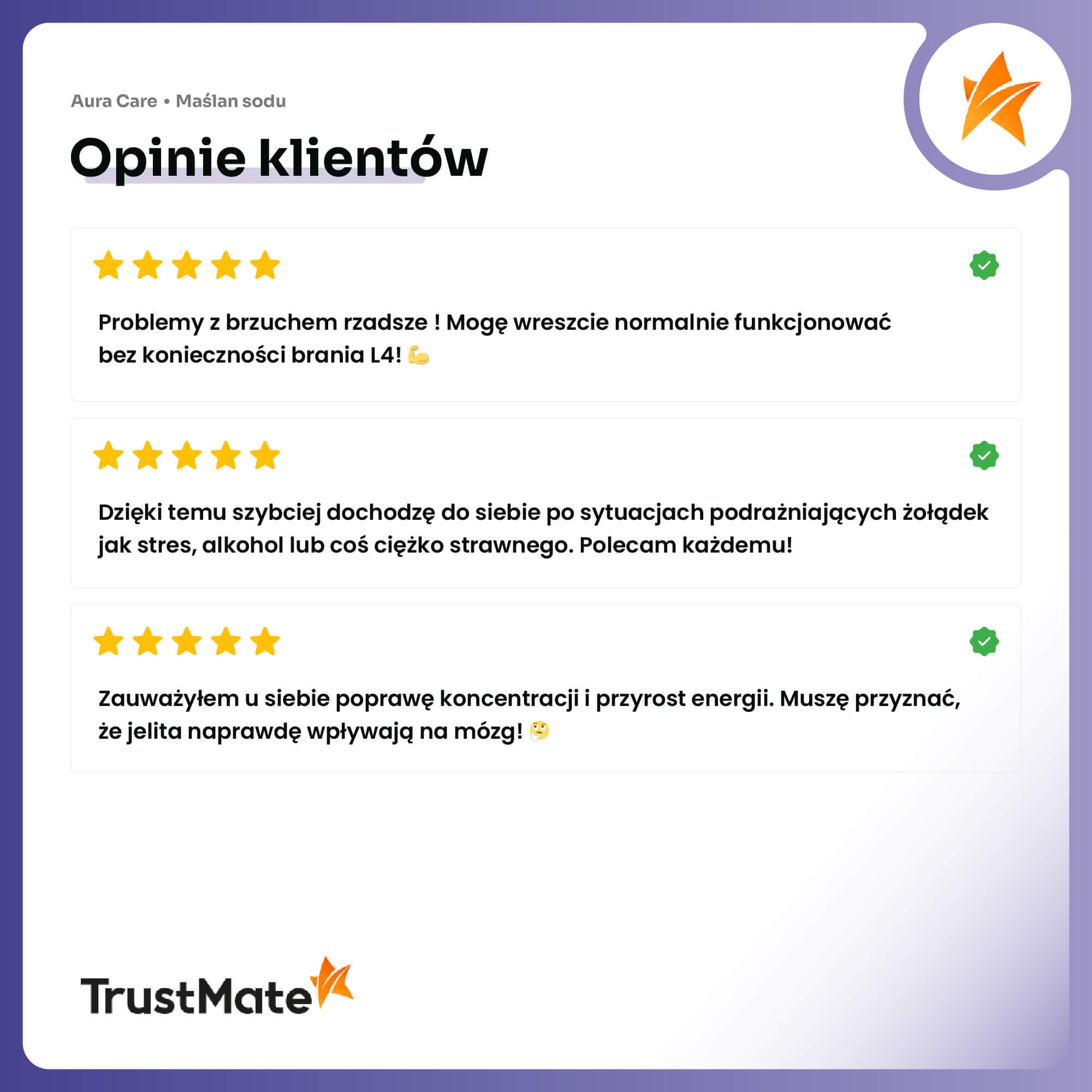 Działanie Regeneruje jelita, wspiera szczelność bariery, poprawia komfort po posiłkach Dostarcza sam maślan