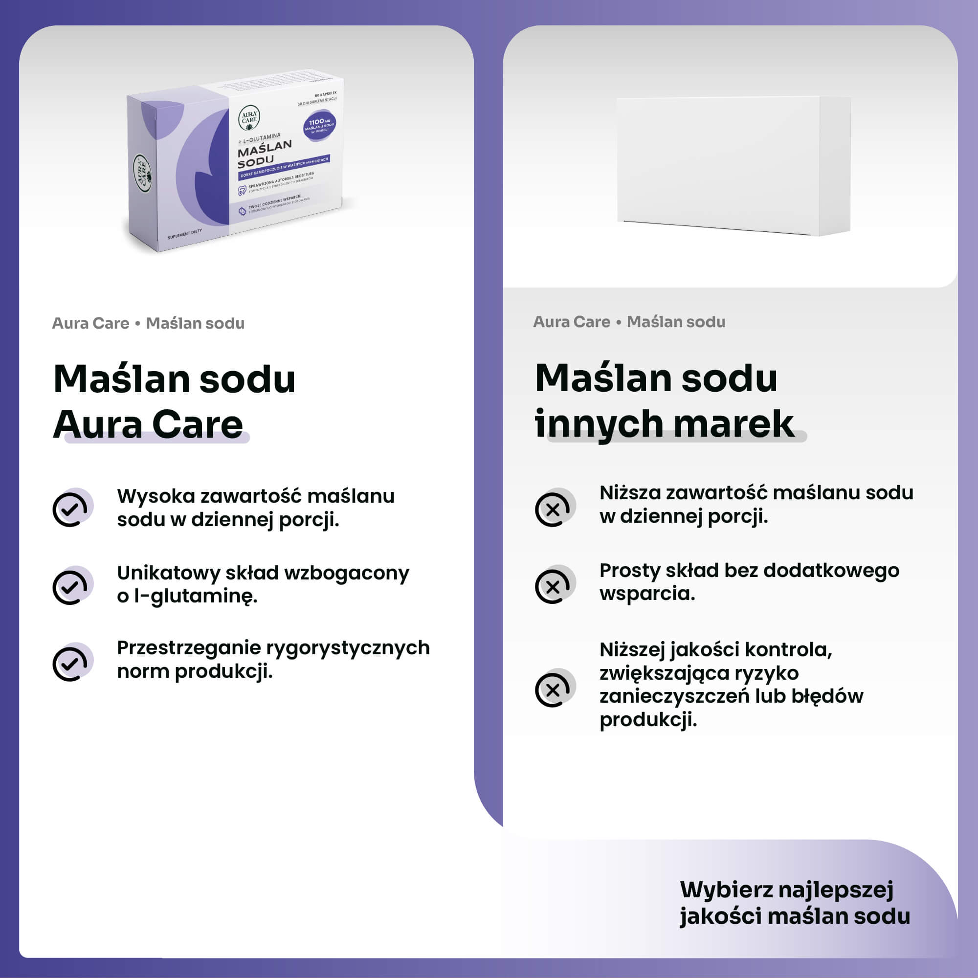 Maślan Sodu + L-GlutaminaMoc synergii Maślan sodu Aura Care | 60 kapsułek