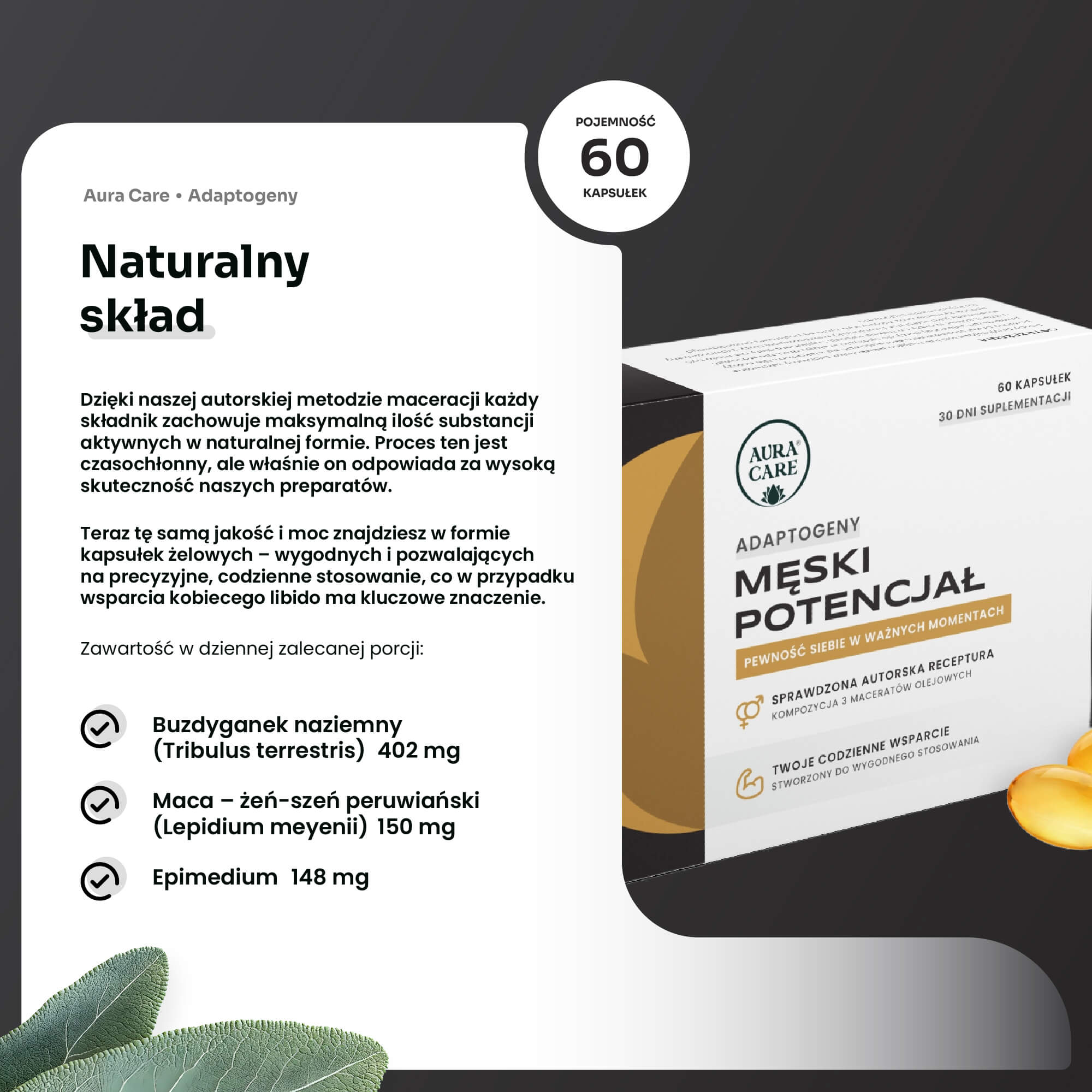 Męski Potencjał – Adaptogeny w kapsułkach żelowych Aura Care