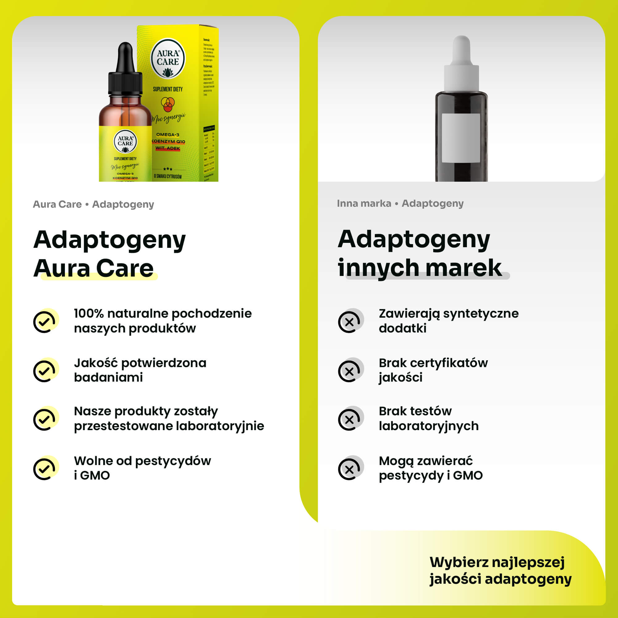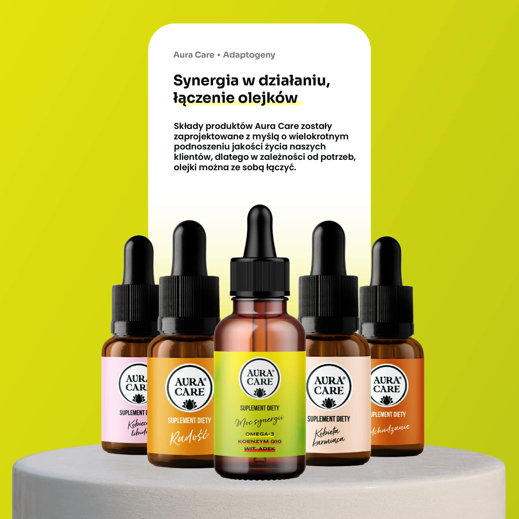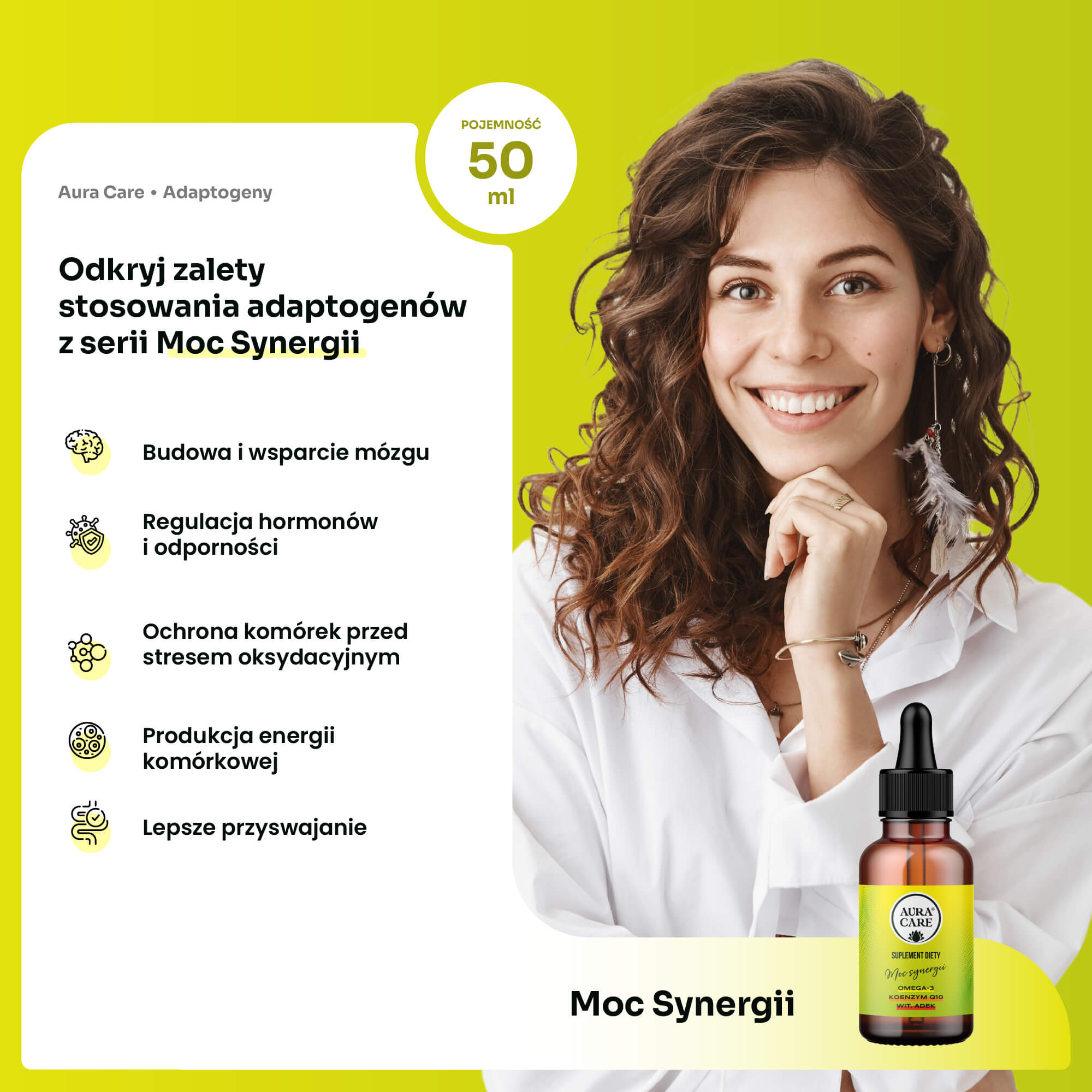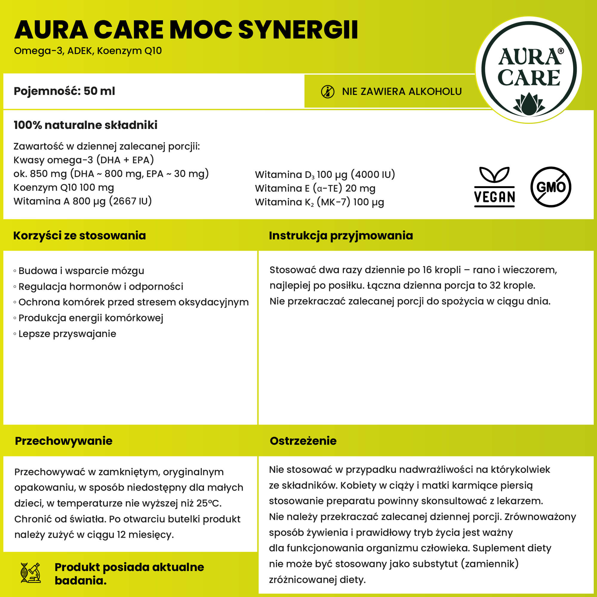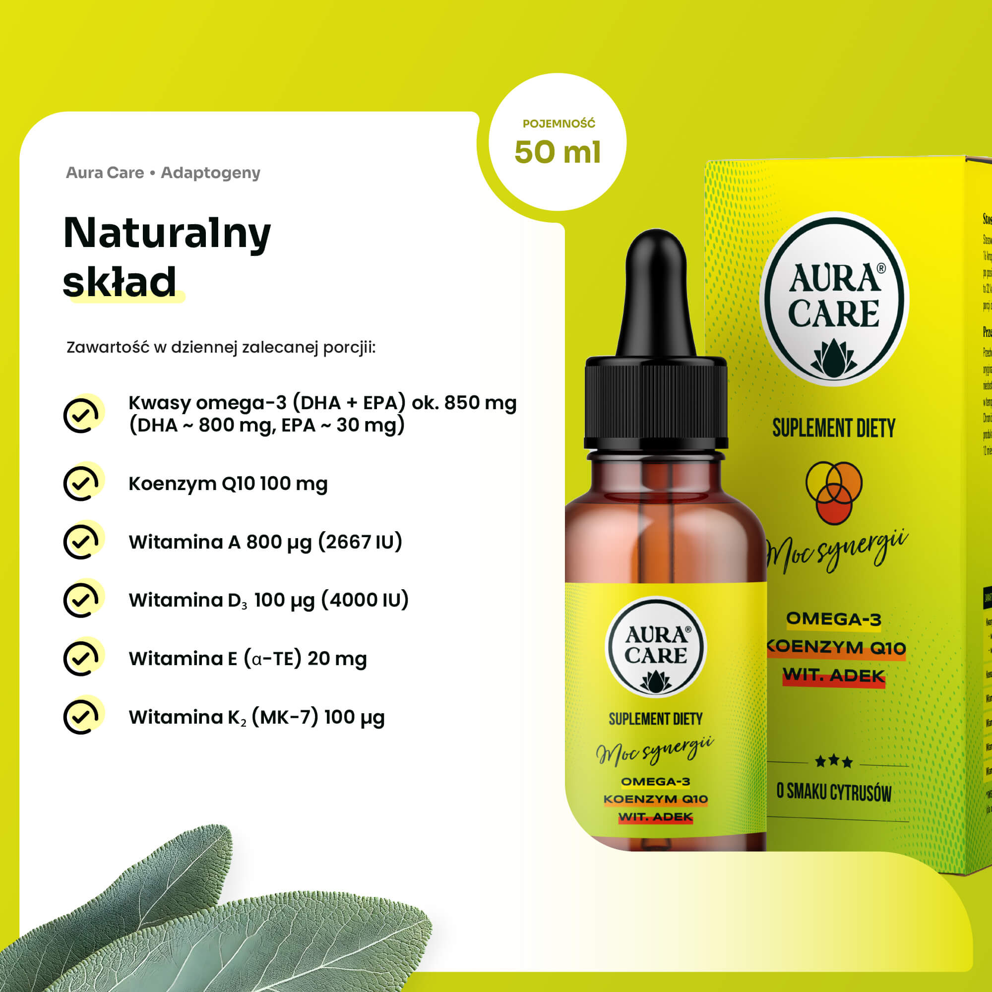 Moc Synergii Omega-3, ADEK, Koenzym Q10 Kwasy Omega-3 Aura Care | 50ml