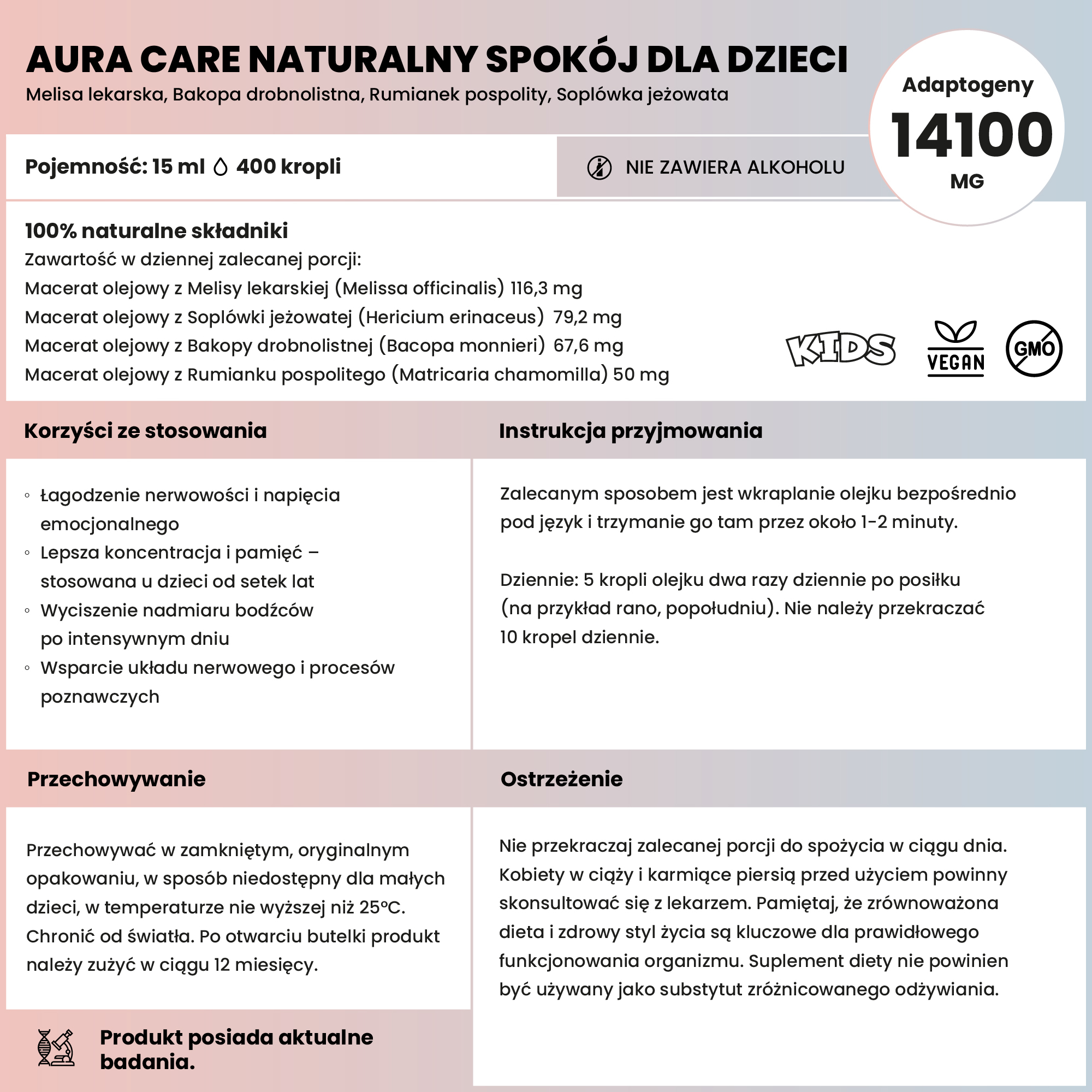Cele suplementacyjne Aura Care – Naturalny Spokój Kids