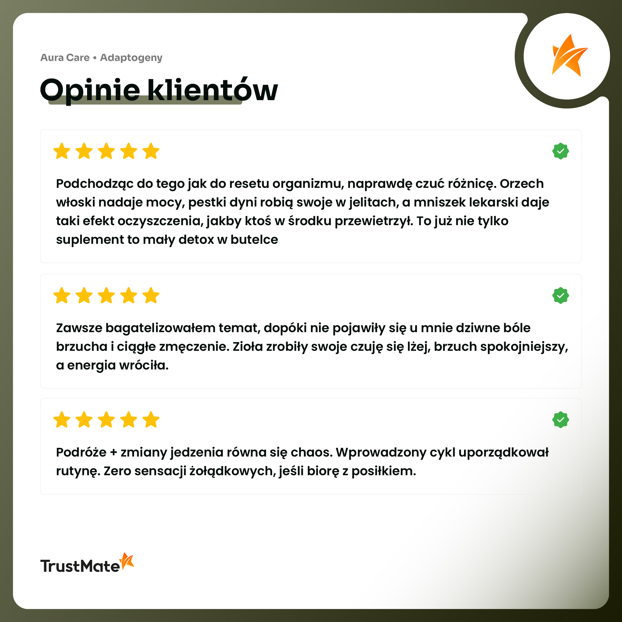 Dlatego po zakończeniu lub równolegle ze stosowaniem Aura Care – Oczyszczanie warto zadbać o wsparcie jelit od środka.