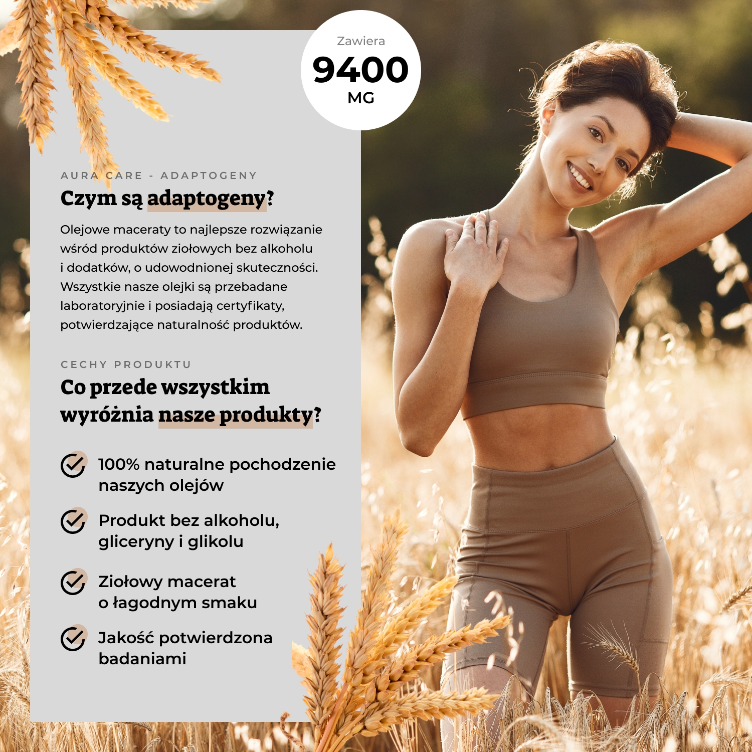 W adaptogenach Aura Care zdecydowaliśmy się na suplementy diety w formie olejku z dołączoną pipetą z zakraplaczem.