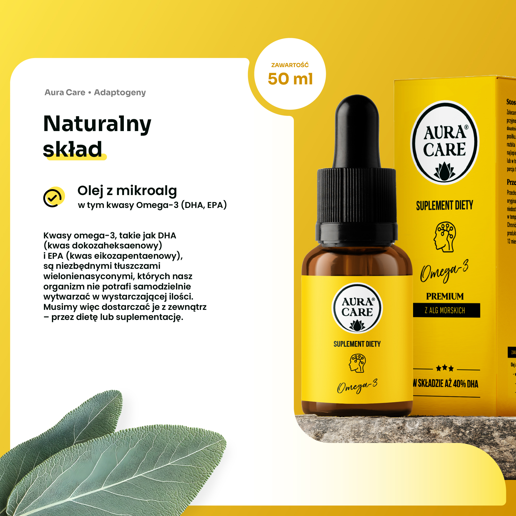 Omega-3 Omega-3 (EPA, 40% DHA), Witamina E, Witamina C Kwasy Omega-3 Aura Care | 50 ml
