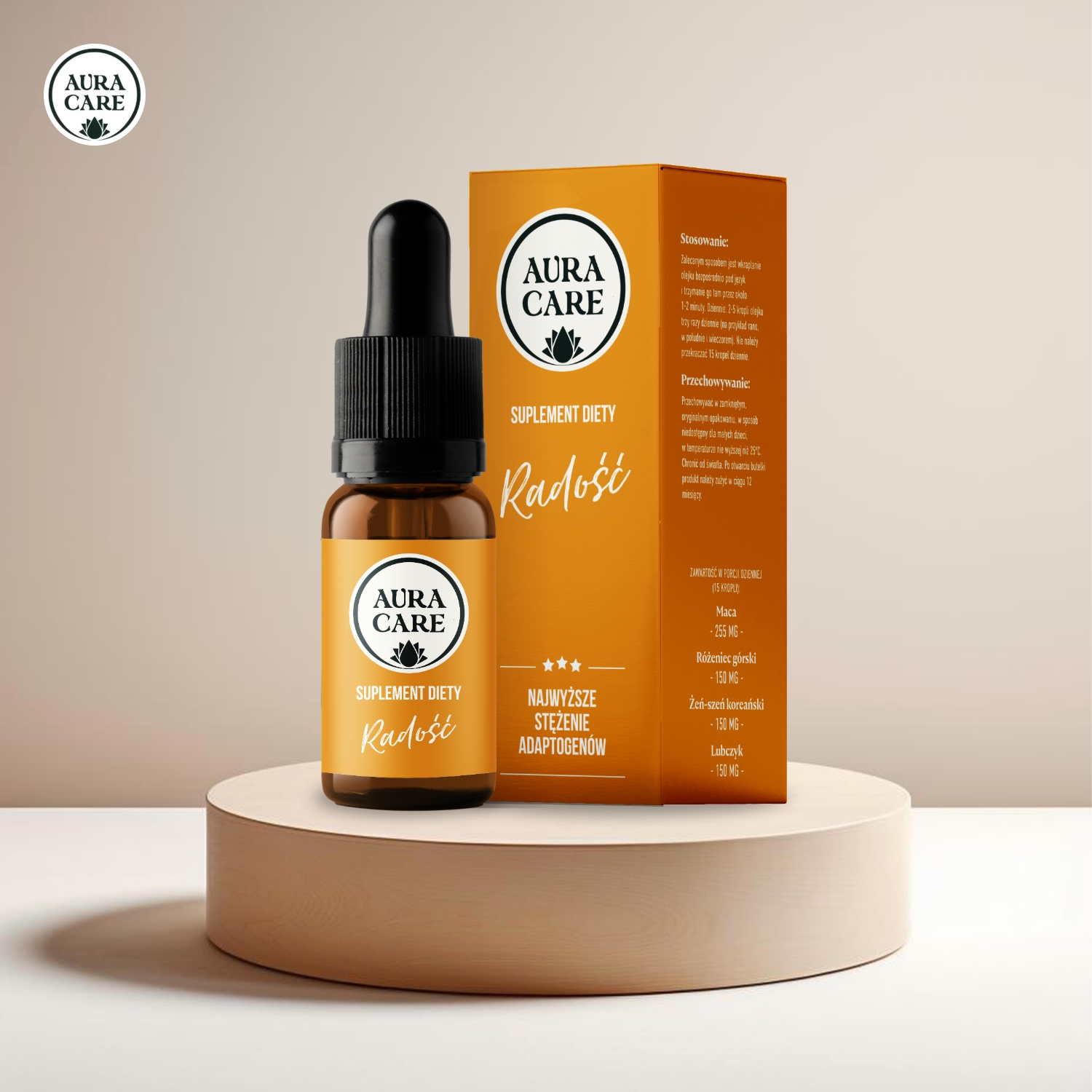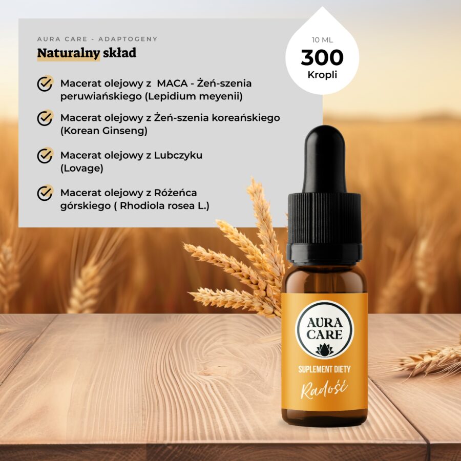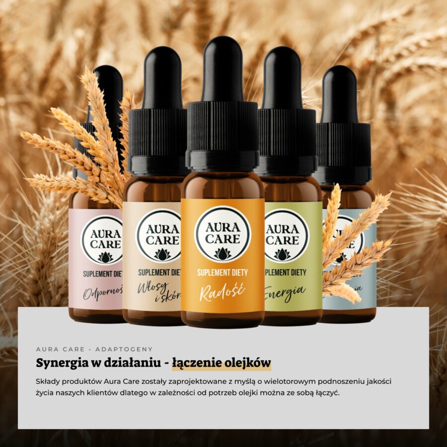 W adaptogenach Aura Care zdecydowaliśmy się na suplementy diety w formie olejku z dołączoną pipetą z zakraplaczem. Na bazie wielu badań zauważyliśmy dużą skuteczność takich preparatów i wygodę przyjmowania , a dodatkowo sama forma olejku pozwala na zwiększenie przyswajania wielu cennych substancji aktywnych. Adaptogeny w formie kropli = wysoka wchłanialność