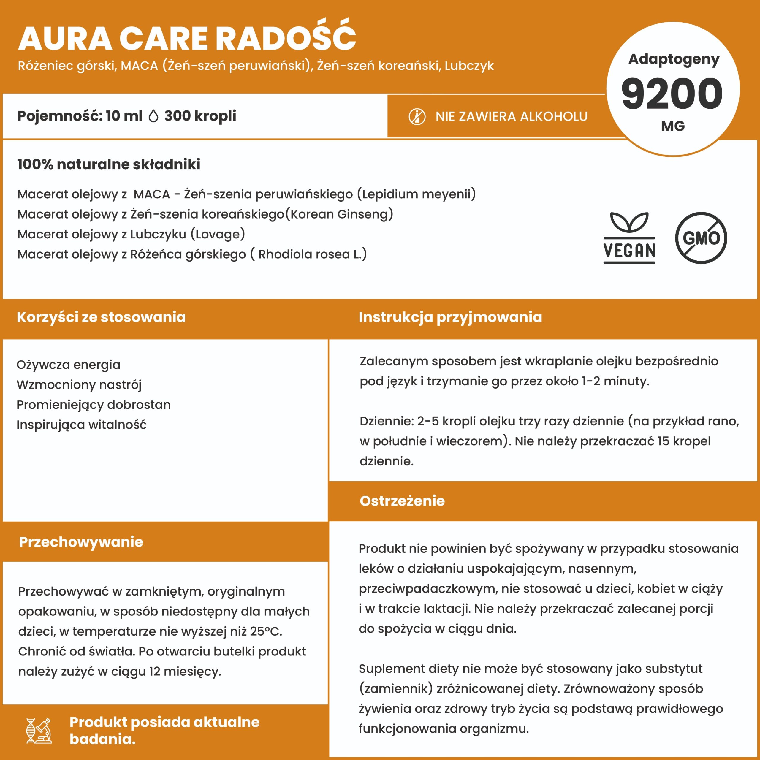 | Zawartość adaptogenów | 9200 mg |