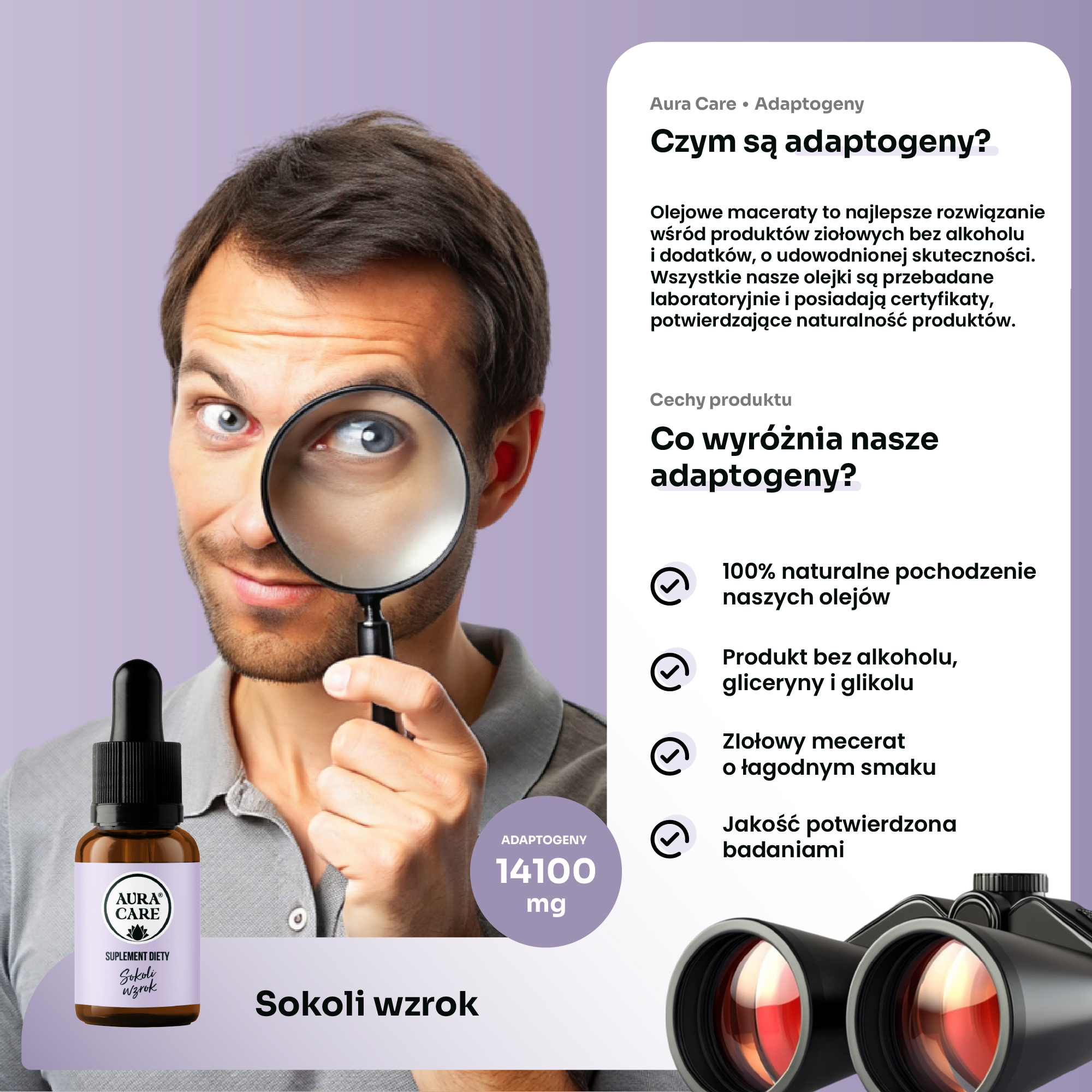 Sokoli Wzrok to przełomowy suplement, który łączy skuteczność ochrony oczu z wyjątkowym komfortem stosowania. W przeciwieństwie do tradycyjnych kropli do oczu, które mogą być nieprzyjemne i wymagają precyzyjnej aplikacji, Sokoli Wzrok przyjmujemy w formie olejku aplikowanego pod język. Ta metoda nie tylko omija dyskomfort związany z zakraplaniem, ale także pozwala na szybkie i efektywne wchłanianie substancji aktywnych do organizmu.