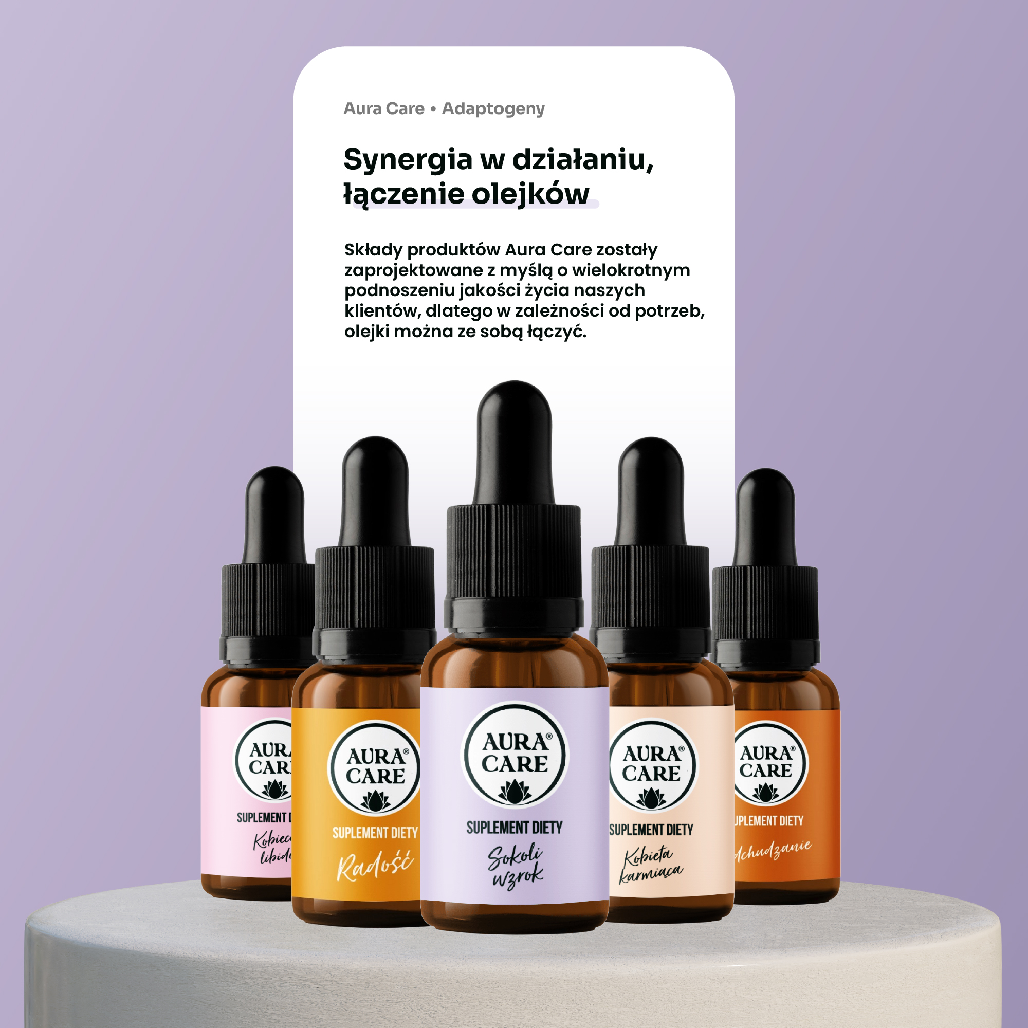 Składy produktów Aura Care zostały zaprojektowane z myślą o wielotorowym podnoszeniu jakości życia naszych klientów dlatego w zależności od potrzeb olejki można ze sobą łączyć. Jeśli masz pytania dotyczące stosowania, użyj chatu. Pomożemy.