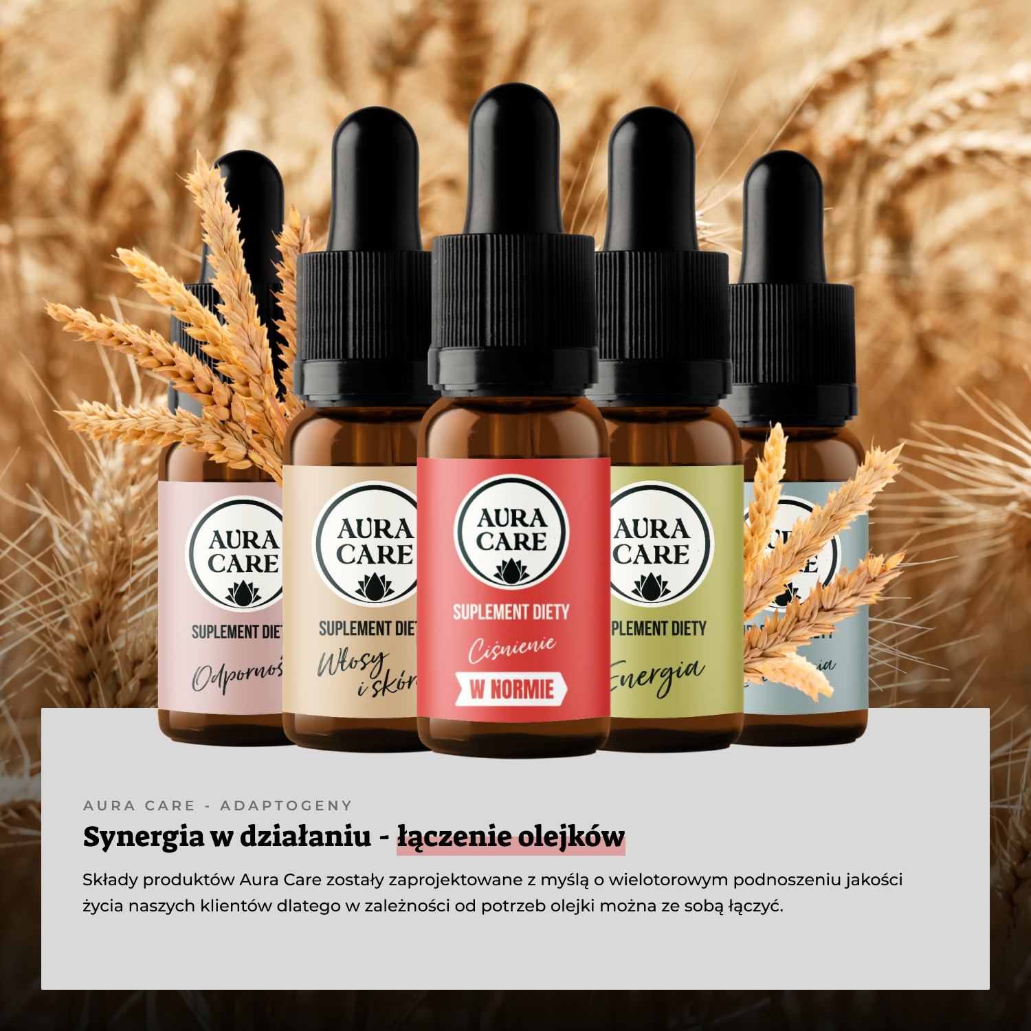W adaptogenach Aura Care zdecydowaliśmy się na suplementy diety w formie olejku z dołączoną pipetą z zakraplaczem. Na bazie wielu badań zauważyliśmy dużą skuteczność takich preparatów i wygodę przyjmowania , a dodatkowo sama forma olejku pozwala na zwiększenie przyswajania wielu cennych substancji aktywnych. Adaptogeny w formie kropli = wysoka wchłanialność