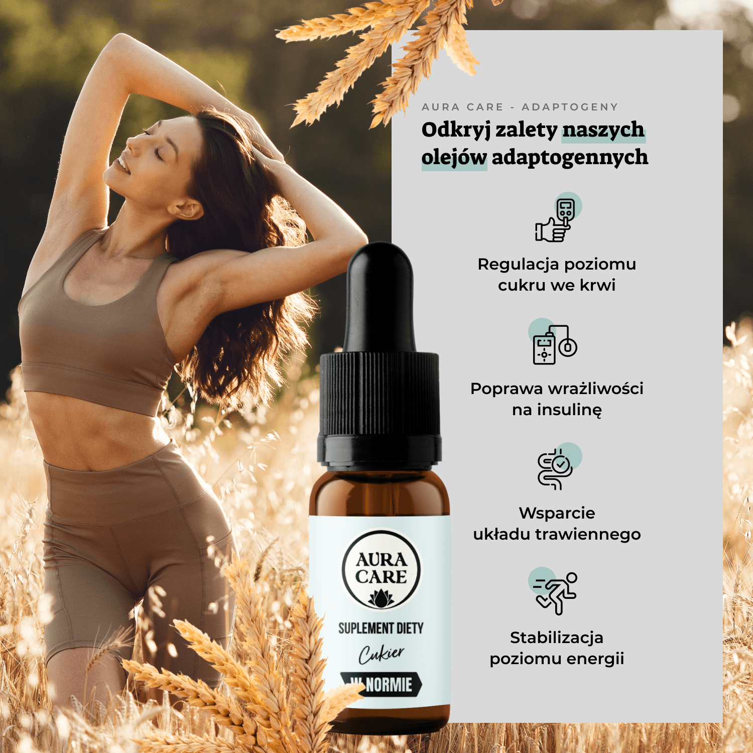 Zapewnij sobie naturalne wsparcie w regulacji poziomu cukru we krwi dzięki naszemu nowemu produktowi „Cukier” z serii “w Normie”. Nasz olejek łączy w sobie siłę naturalnych składników, aby pomóc Ci w utrzymaniu zdrowego poziomu cukru we krwi, poprawie wrażliwości na insulinę oraz stabilizacji poziomu energii w ciągu dnia.