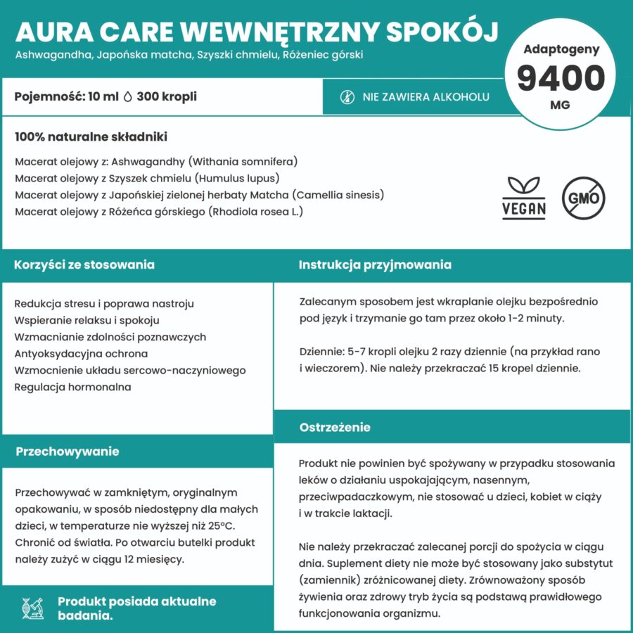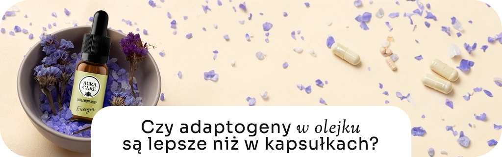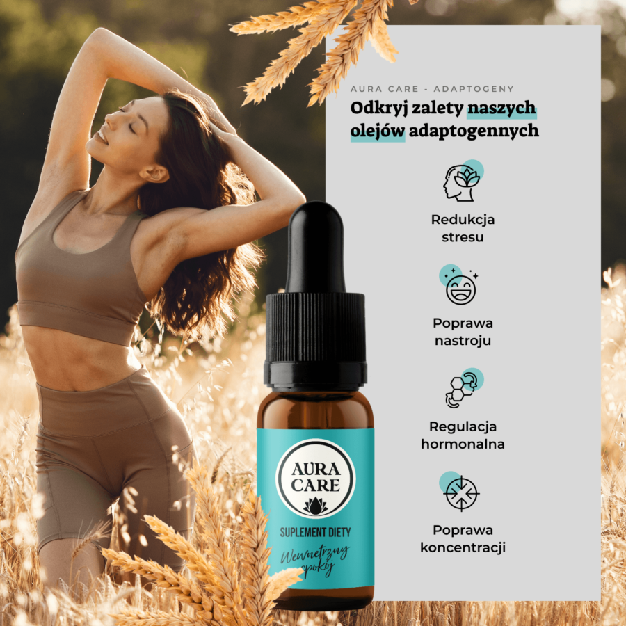 W adaptogenach Aura Care zdecydowaliśmy się na suplementy diety w formie olejku z dołączoną pipetą z zakraplaczem. Na bazie wielu badań zauważyliśmy dużą skuteczność takich preparatów i wygodę przyjmowania , a dodatkowo sama forma olejku pozwala na zwiększenie przyswajania wielu cennych substancji aktywnych. Adaptogeny w formie kropli = wysoka wchłanialność