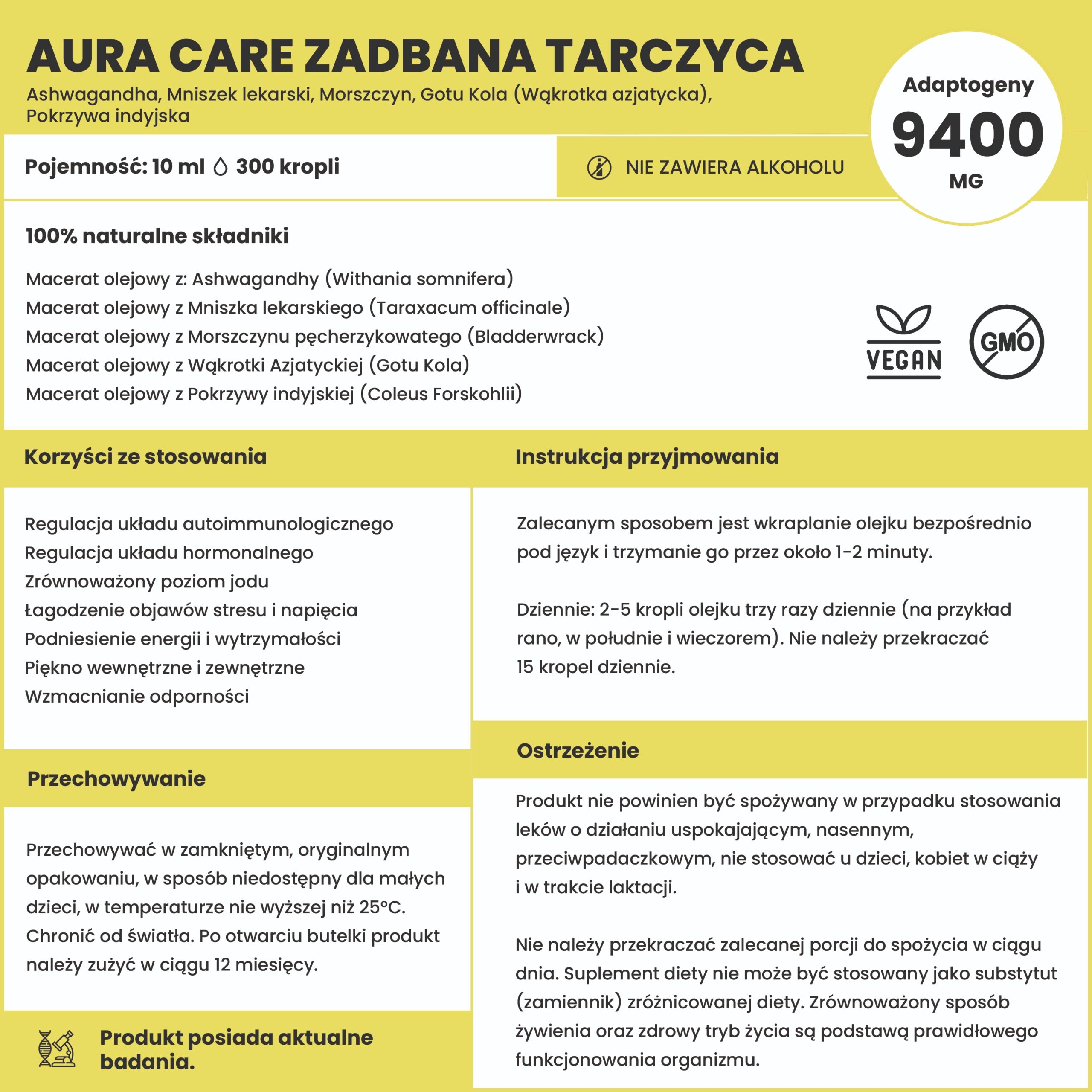 | Zawartość adaptogenów | 9400 mg |